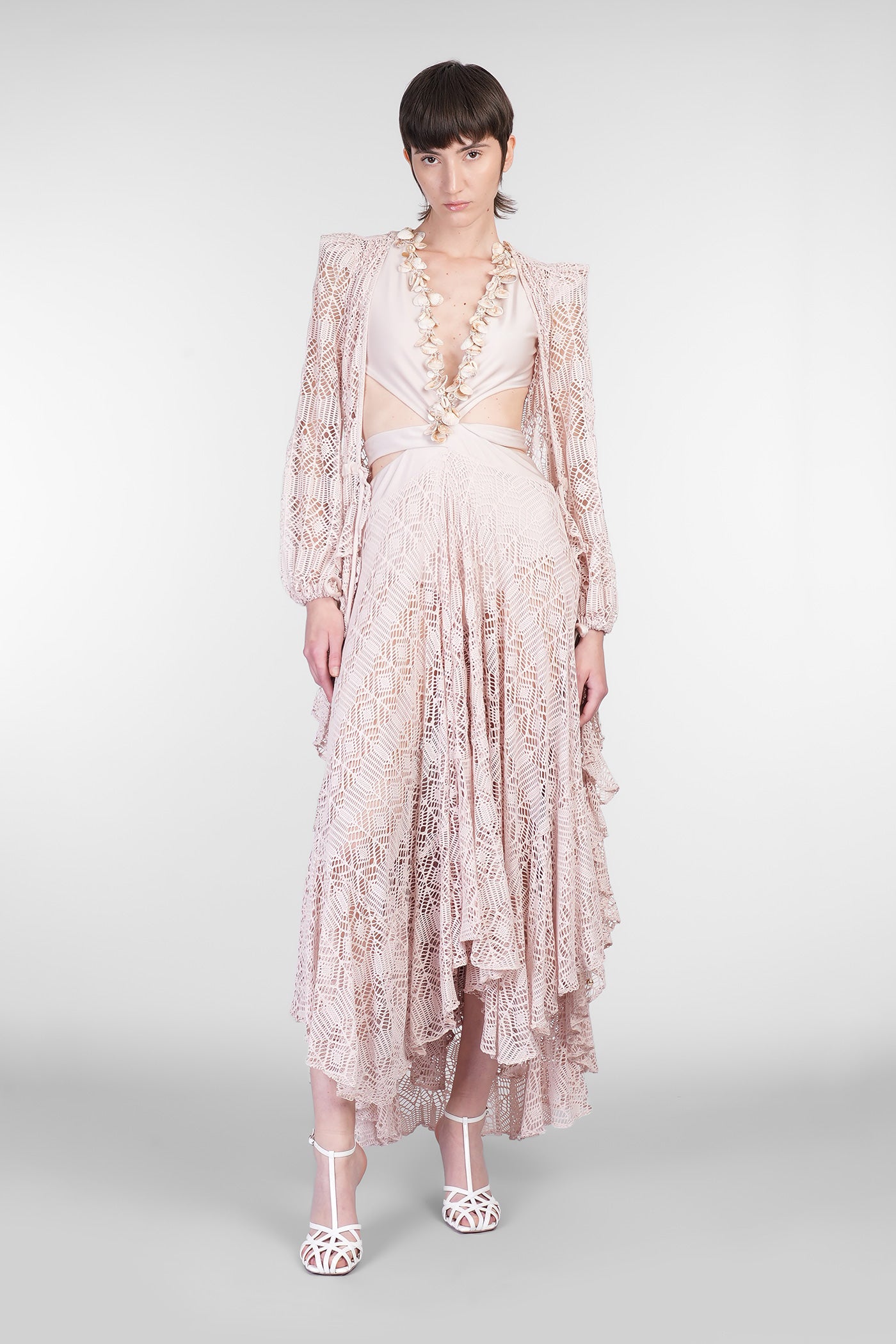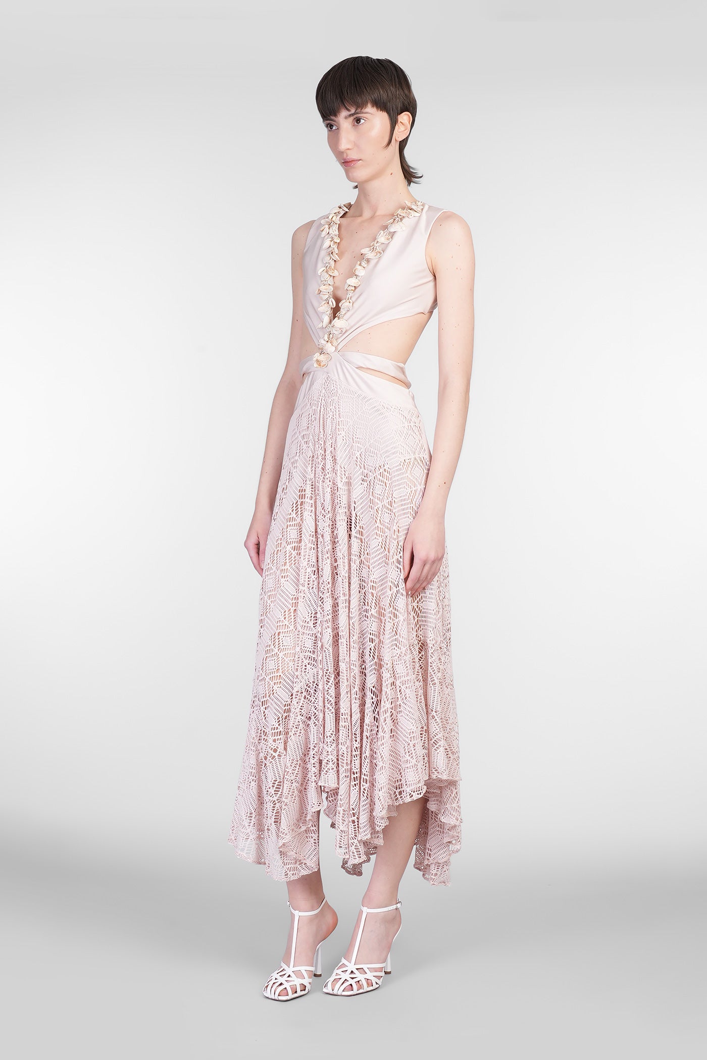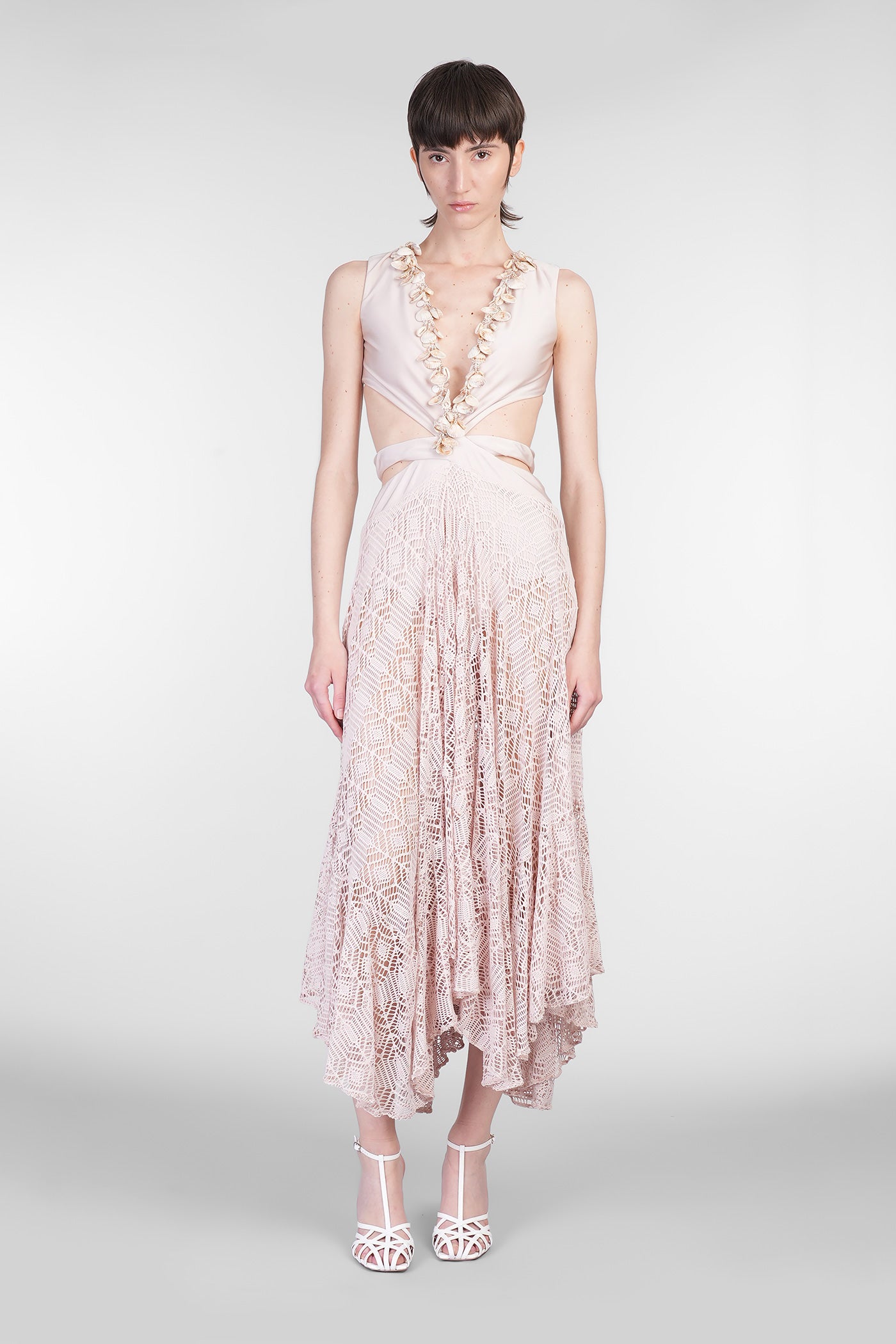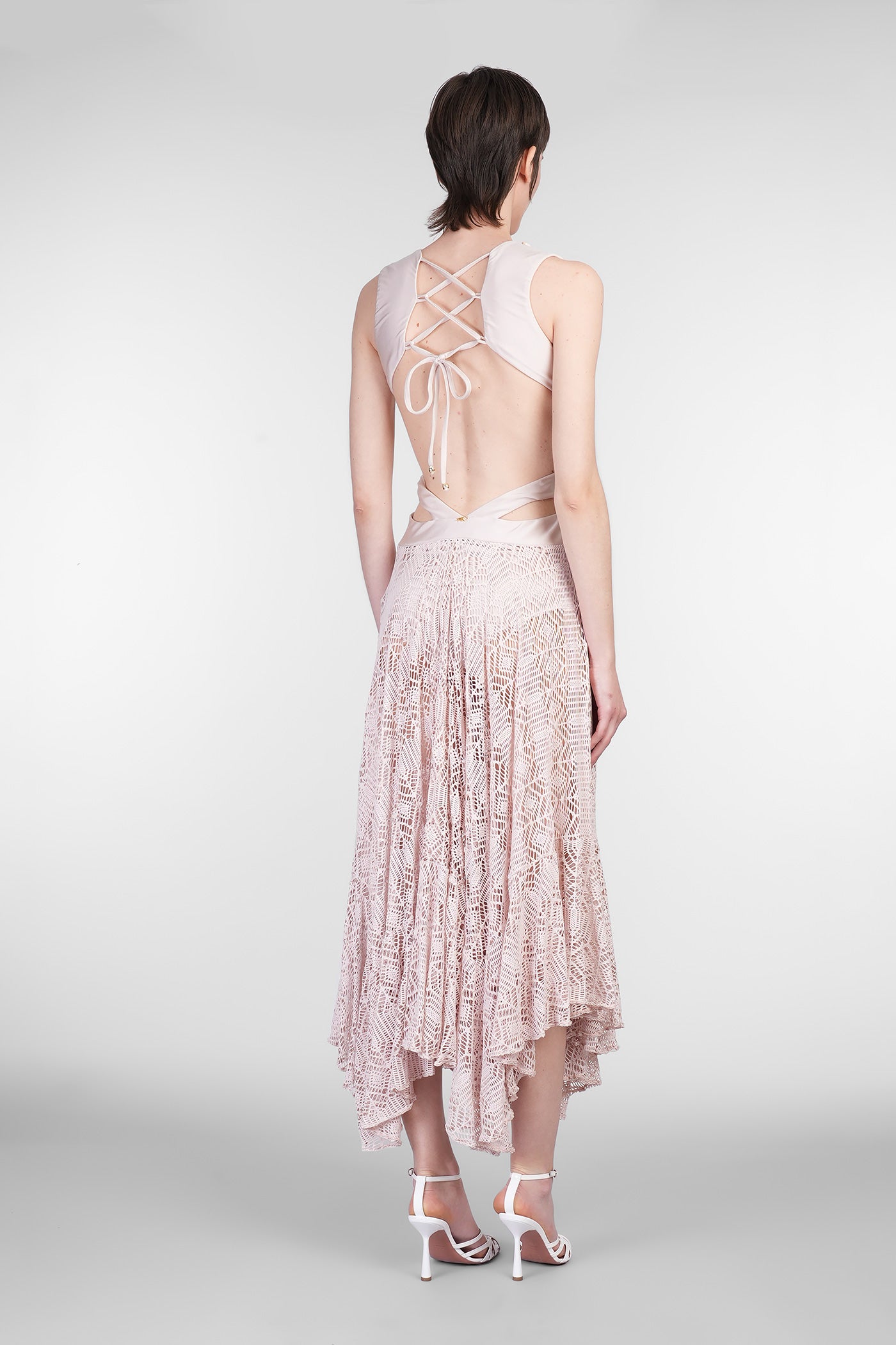 Long dress in rose-pink polyamide
