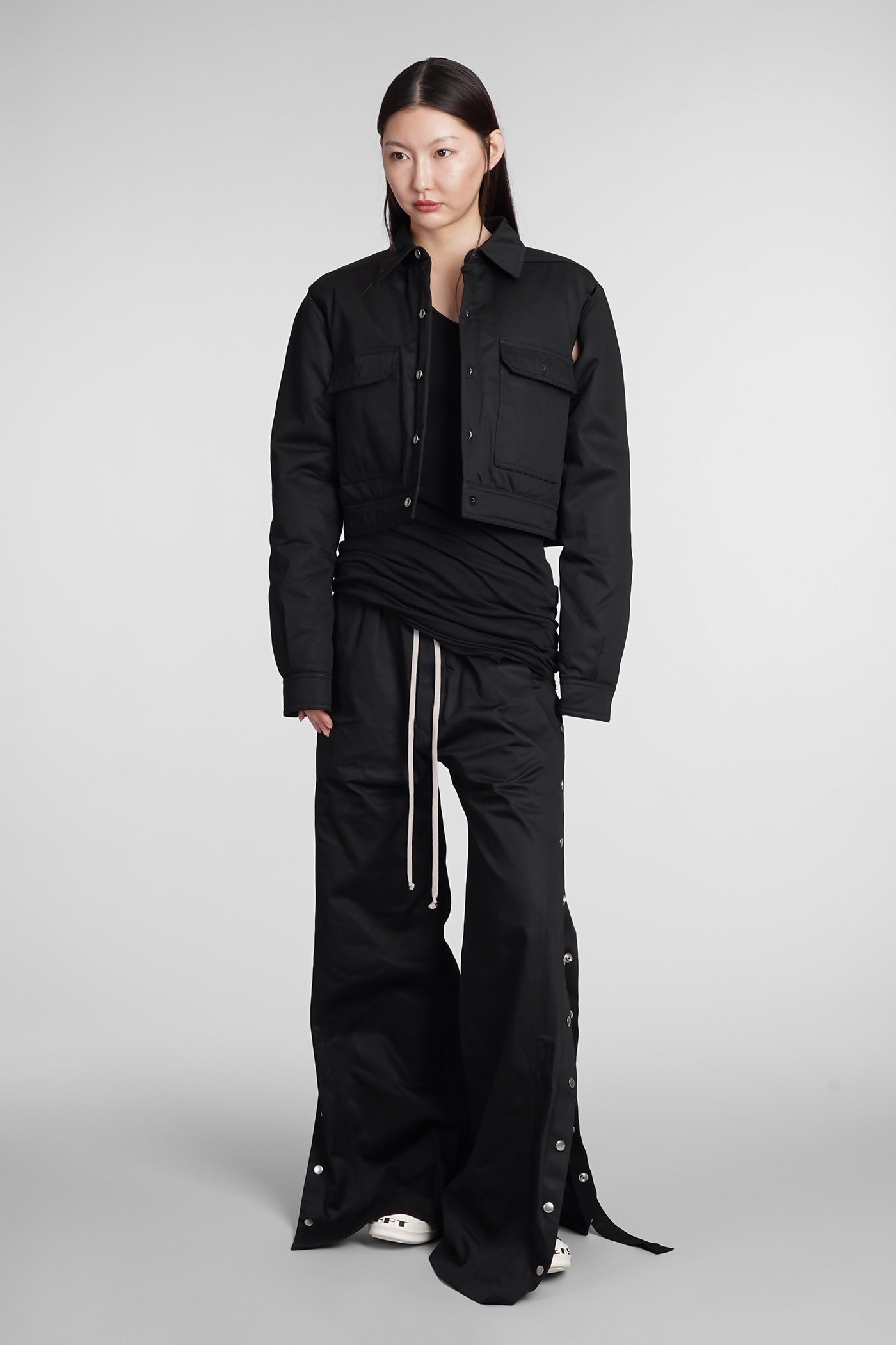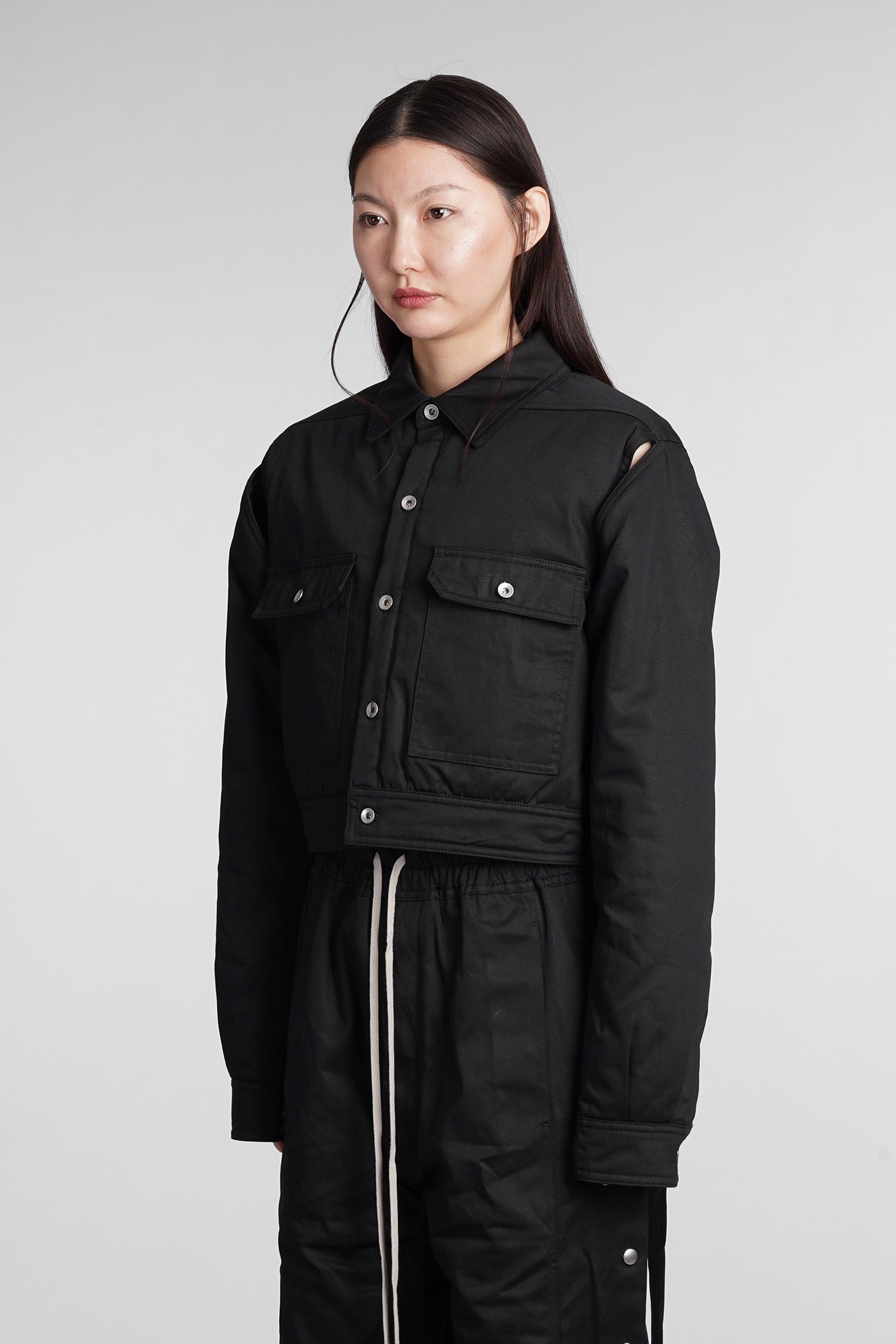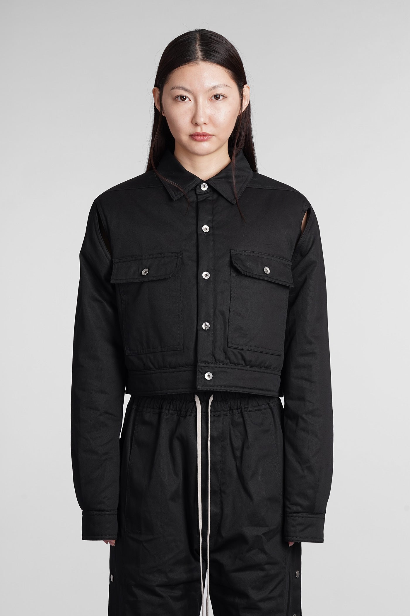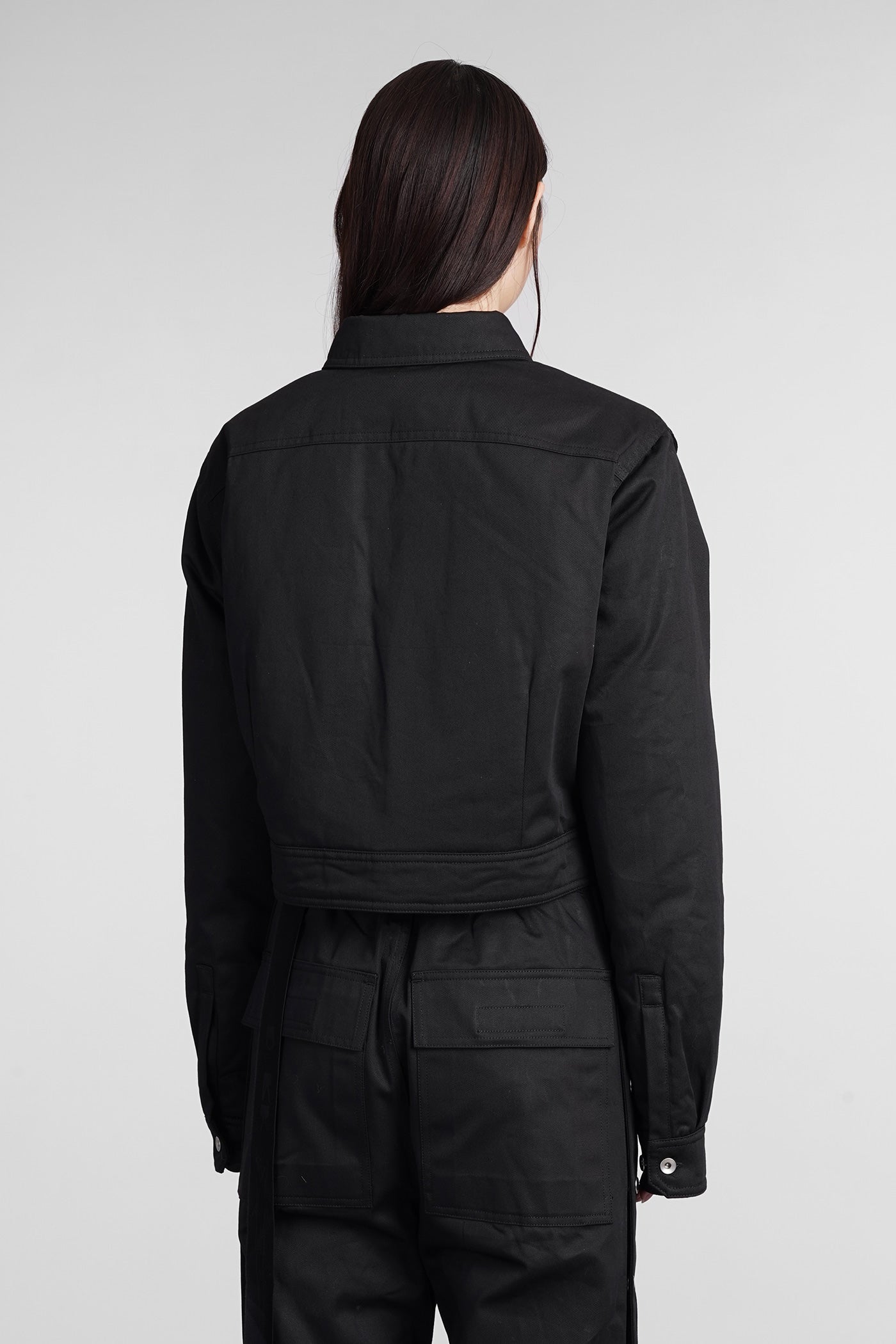 Cape sleeve cropped Casual jacket in black cotton