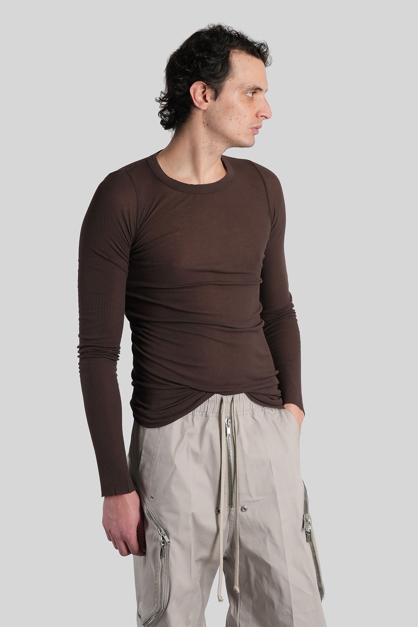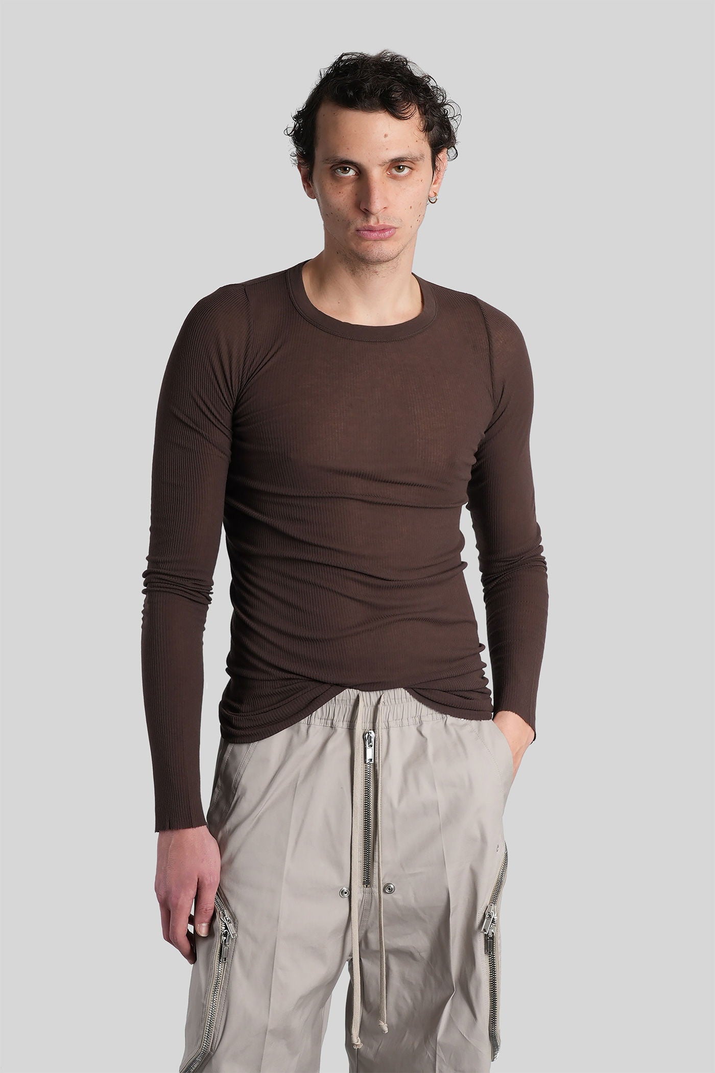 Rib ls t in brown viscose