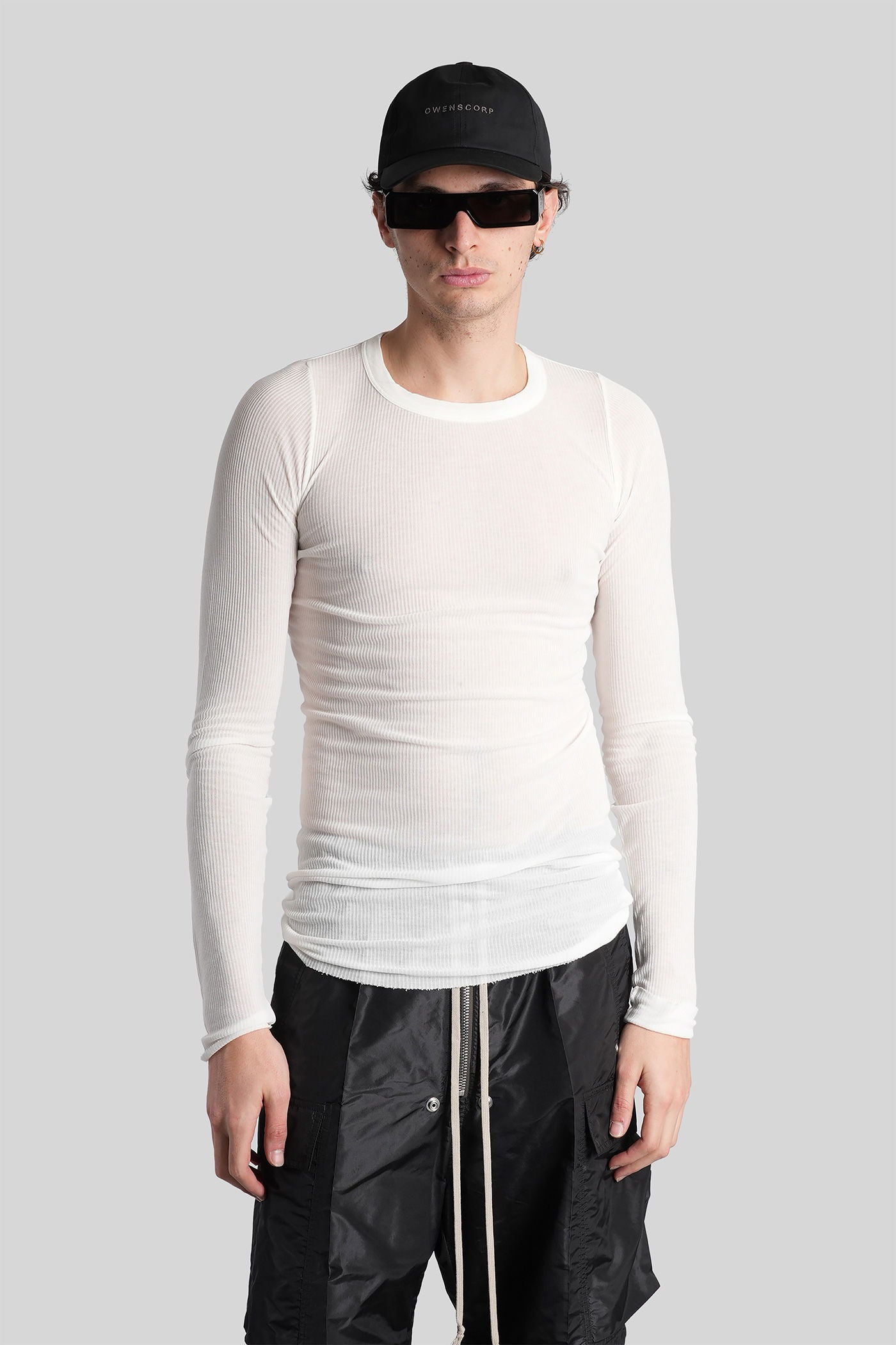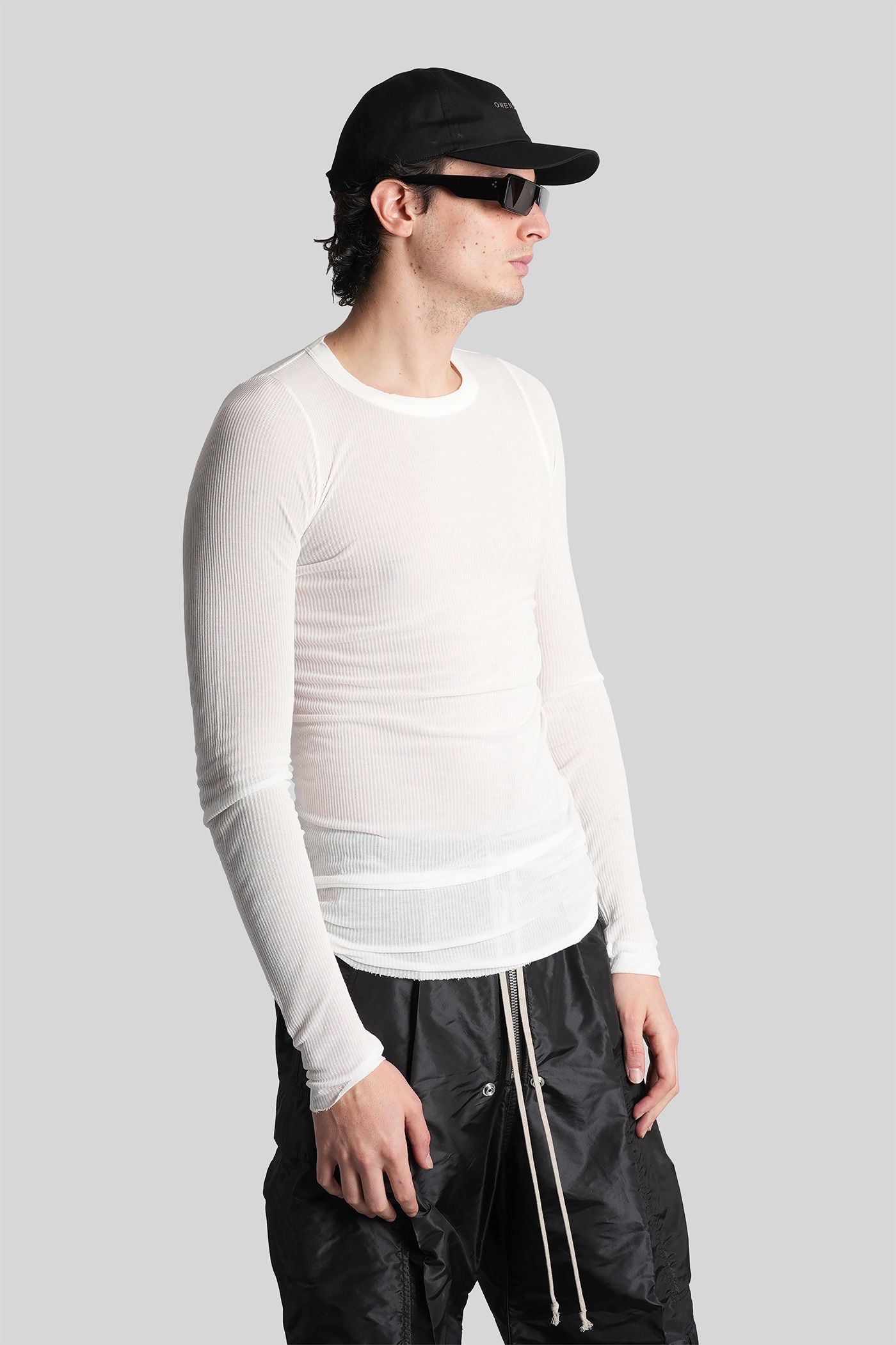 Rib ls t in white viscose