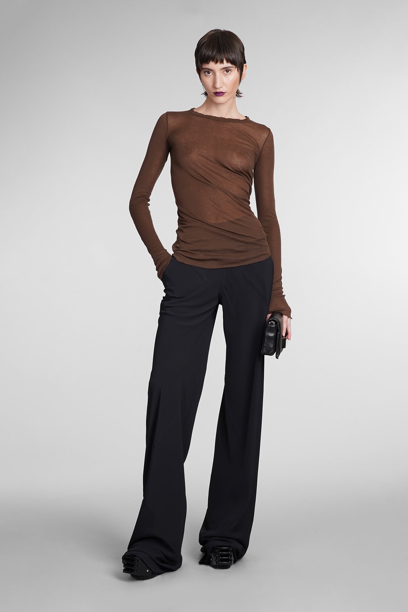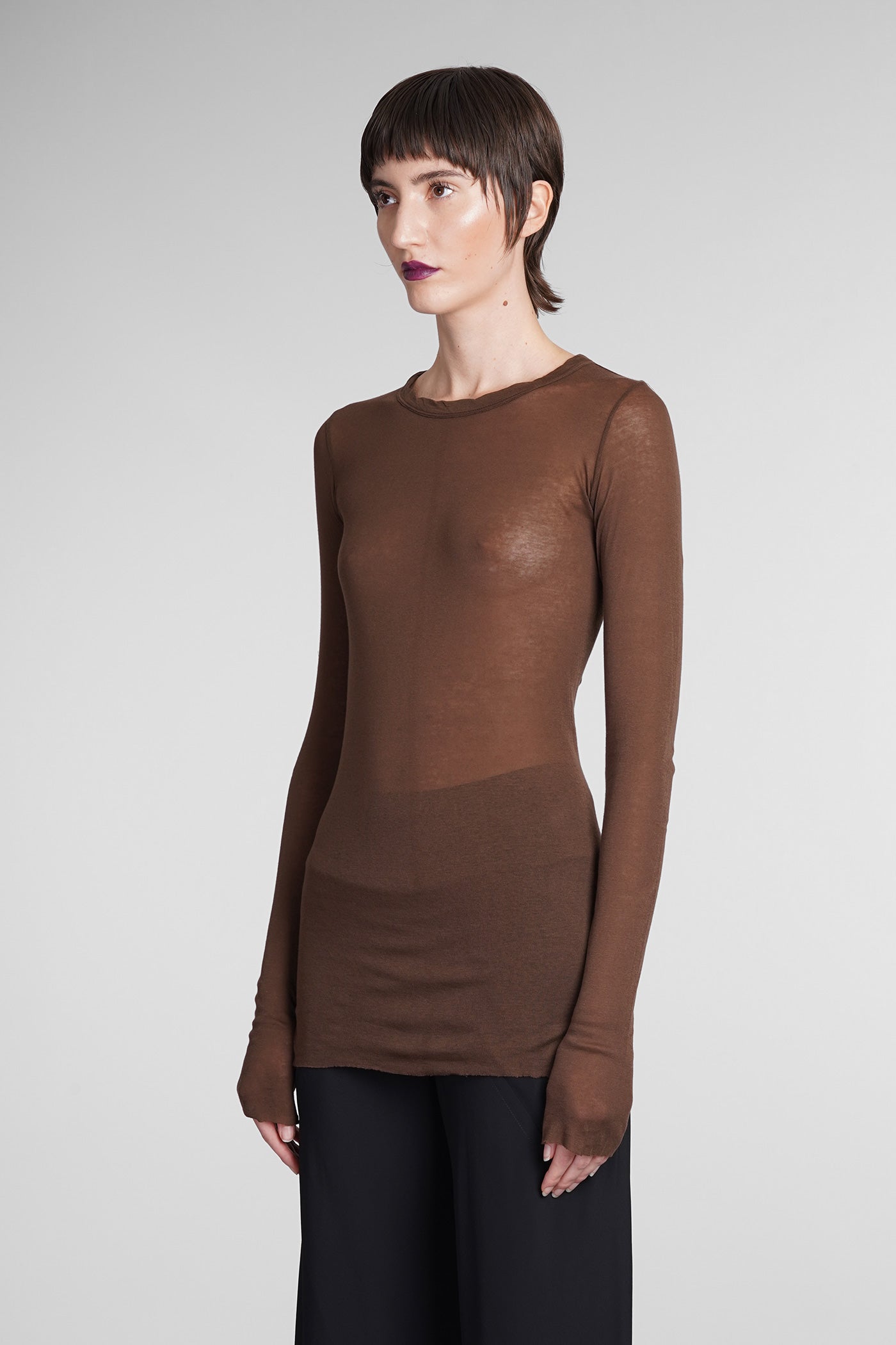 Rib ls T T-Shirt in brown cotton