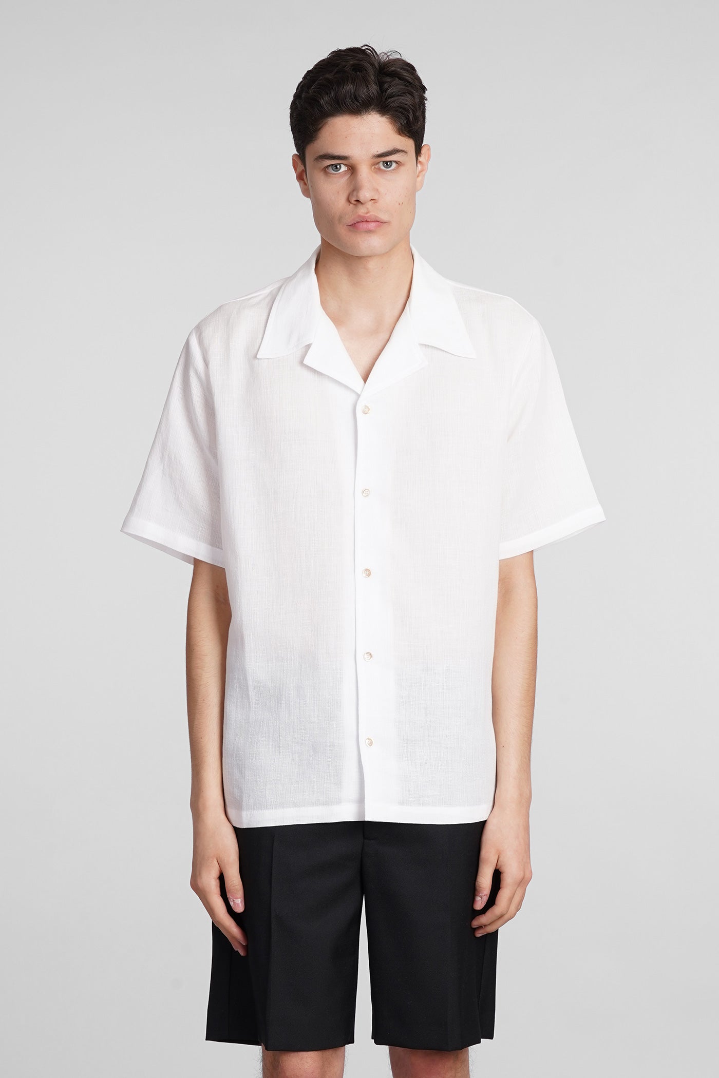 Shirt in white cotton and linen