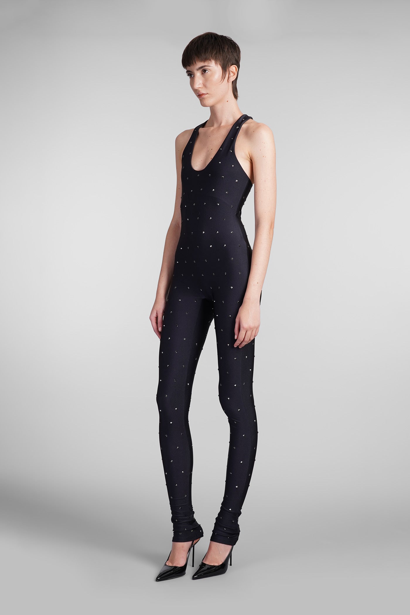 Tess Crystal Jumpsuit in black polyamide
