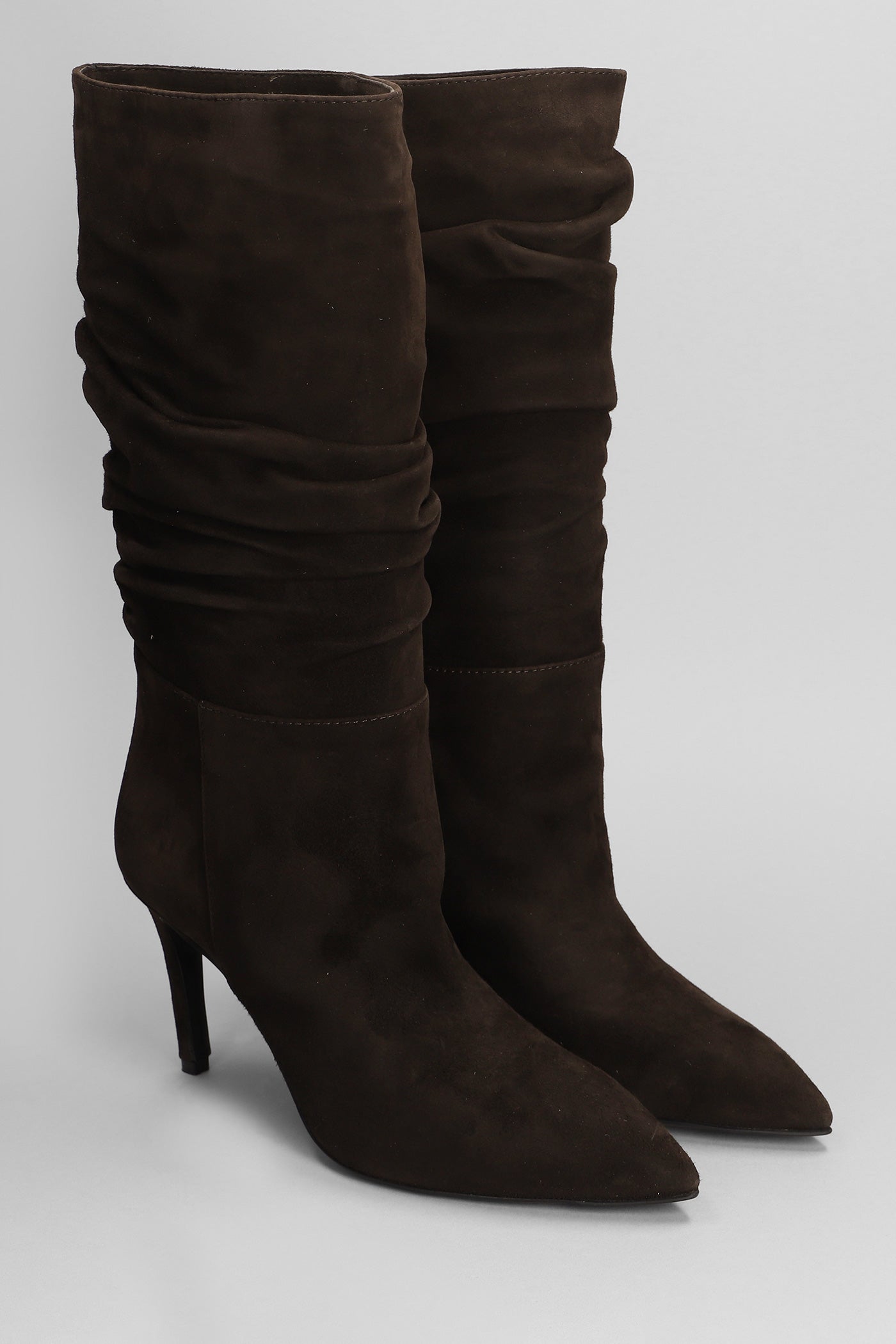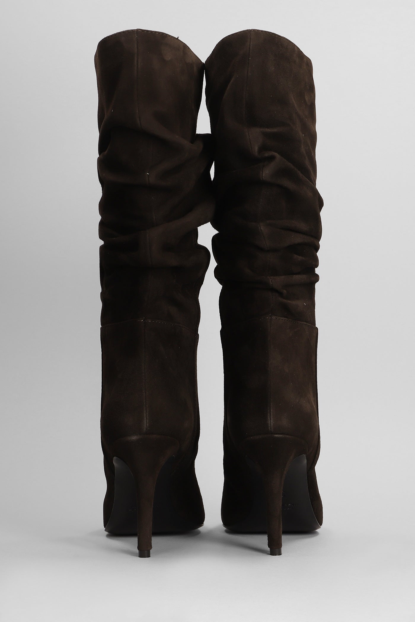 High heels boots in dark brown suede
